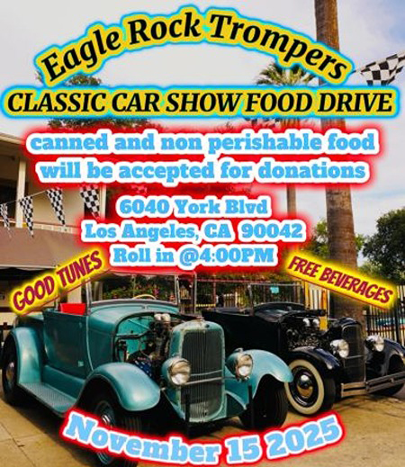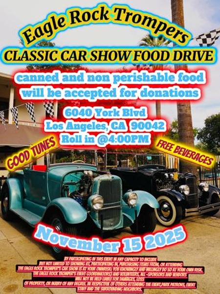 Eagle Rock Trompers Classic Car Show Food Drive is rolling into Highland Park for 2025!