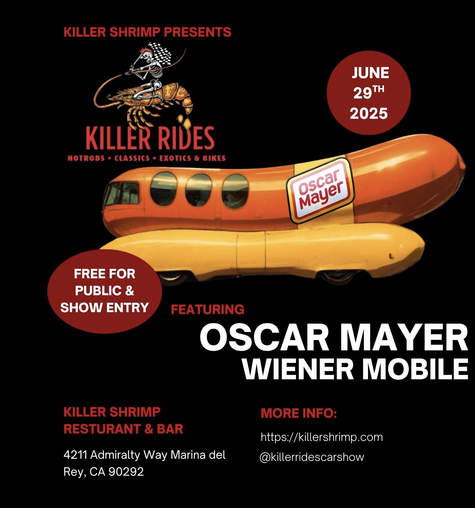 Killer Rides is an entirely free car show that has been in the Marina for 14 years. We are excited to announce the Oscar Mayer Wiener Mobile will be joining us once again on June 29th. This show is from 10am-1pm but we recommend coming early to grab a spot because space fills up early.