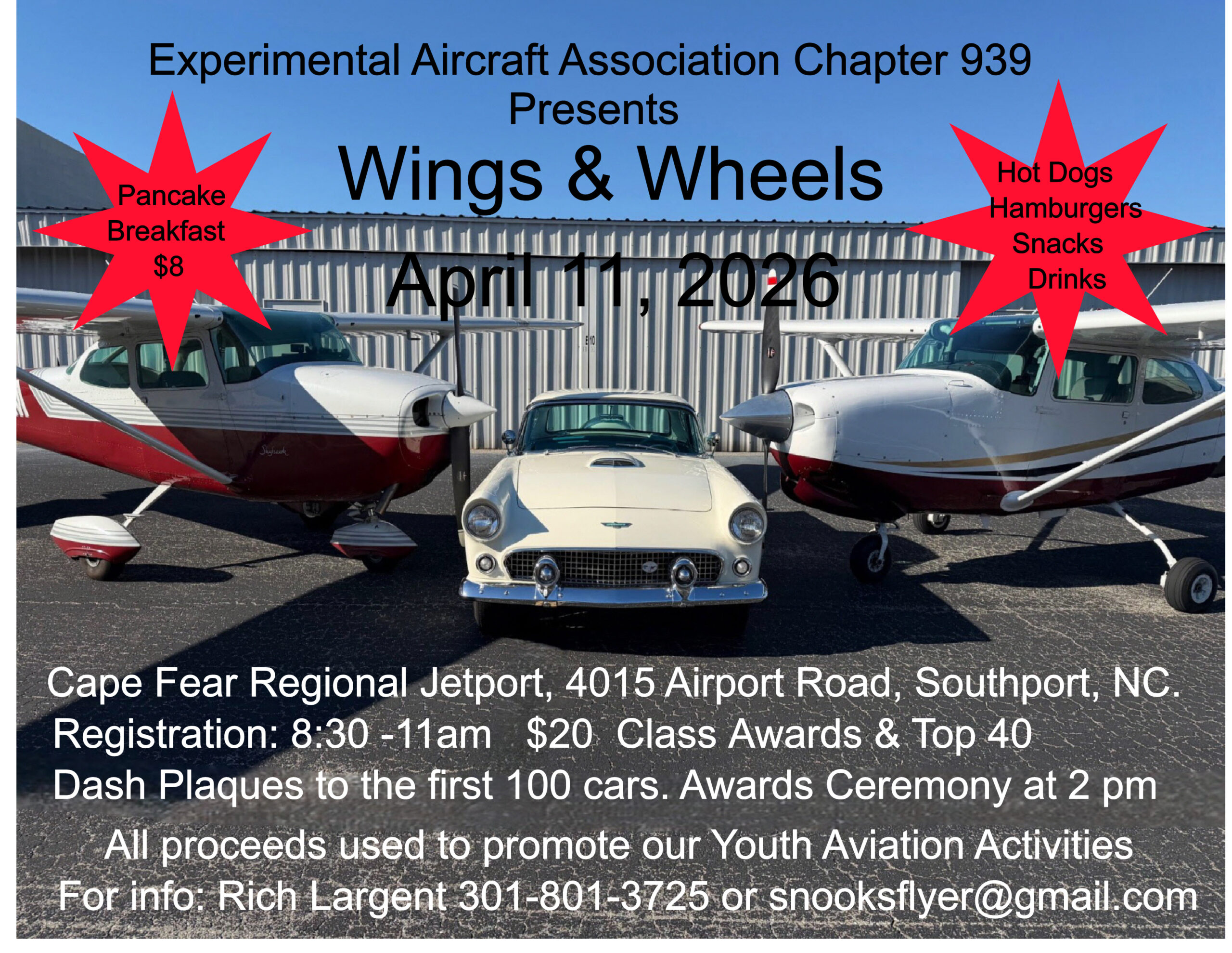 T he Experimental Aircraft Association (EAA) Chapter #939 is hosting Wings & Wheels 2026 on April 11th at the Cape Fear Regional Jetport. This annual event combines an aircraft fly-in and aircraft static displays with a classic car show. As shown in the enclosed media promotion, there is something for everyone including a pancake breakfast, lunch service, music, 50/50 raffle, and award presentations for both aircraft and cars.