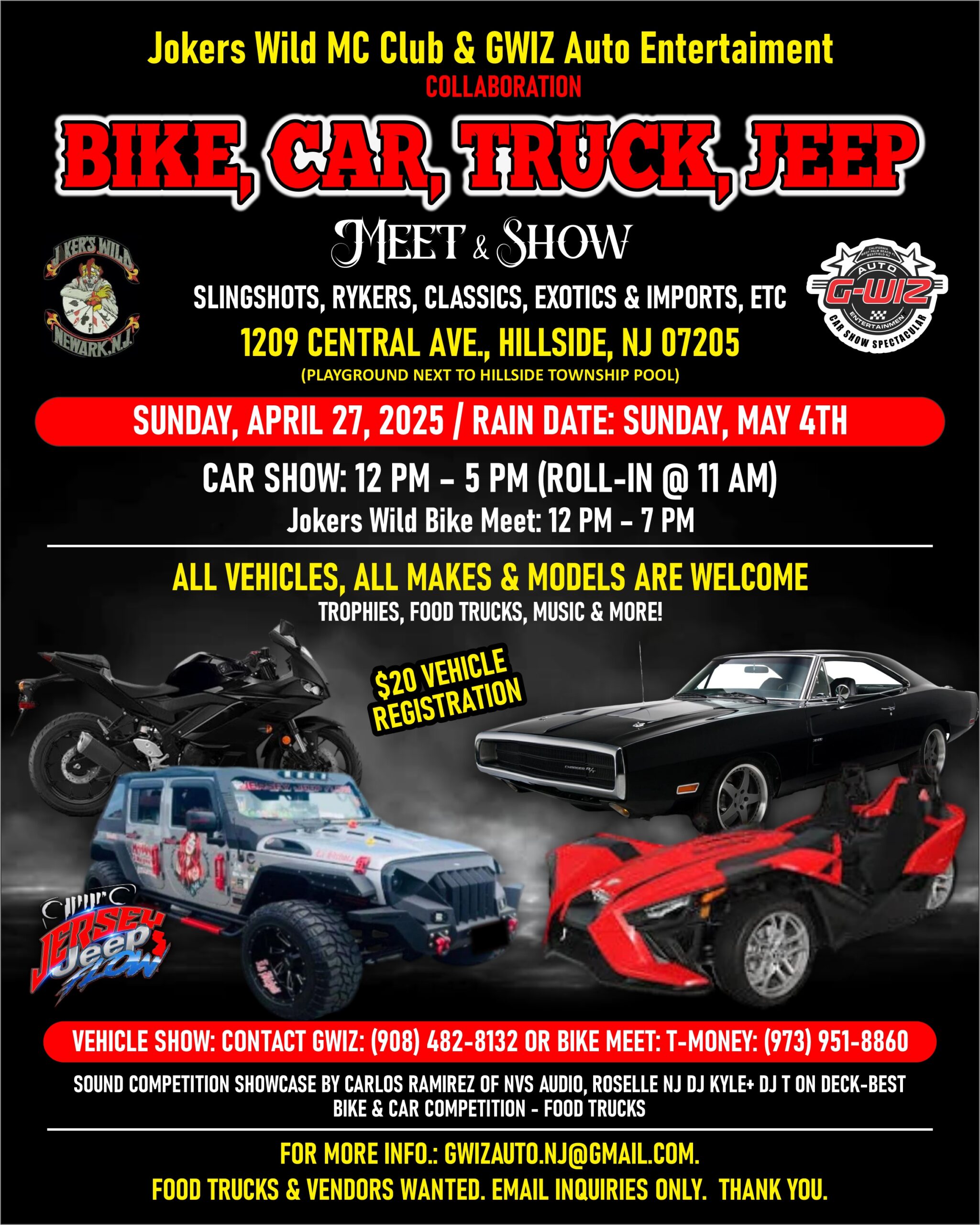 INFO & REG: George of GWIZ at 908 482-8132 or GWIZauto.NJ@gmail.com.,