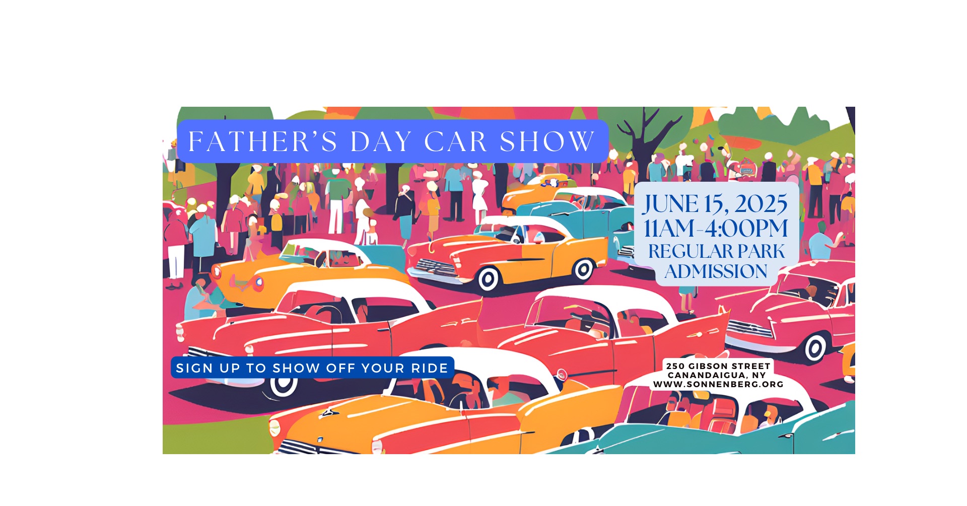 • public 2025-06-15 11:00:00 2025-06-15 16:00:00 America/Chicago Sonnenberg Gardens Fathers Day Car Show Sonnenberg Gardens Fathers Day Car Show will be held 6/15/2025 11:00 am to 6/15/2025 04:00 pm. Details online at: https://carshowradar.com/shows/ny/sonnenberg-gardens-fathers-day-car-show/. CANANDAIGUA, New York
