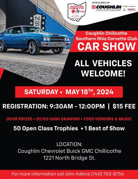 • public 2024-05-18 09:30:00 2024-05-18 15:00:00 America/Chicago Coughlin Chillicothe Car Show Coughlin Chillicothe Car Show will be held 5/18/2024 9:30 am to 5/18/2024 3:00 pm. Details online at: https://carshowradar.com/shows/oh/coughlin-chillicothe-car-show/. Chillicothe, Ohio
