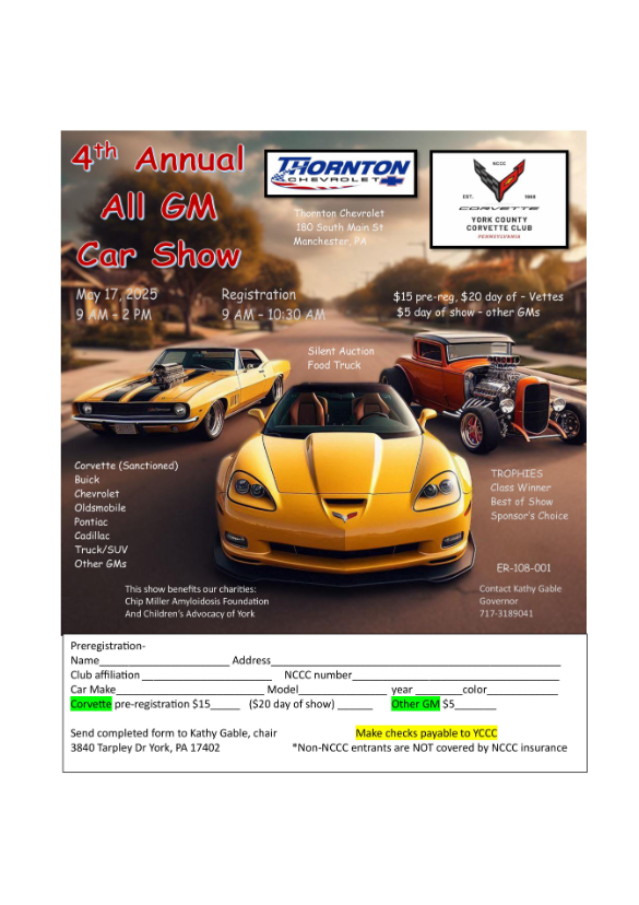 Sponsored by Thornton Chevrolet and York County Corvette Club, the proceeds benefit two charities: