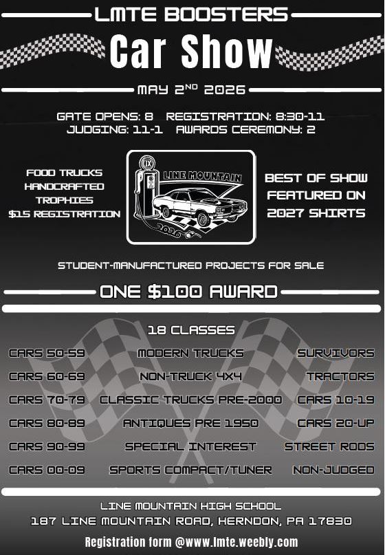 The Line Mountain Technology Education Boosters are hosting their 9th Annual Car Show on Saturday, May 2nd, 2026. The rain date will be the following day, Sunday, May 3rd.