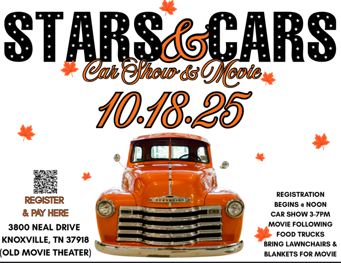 Cinema themed car show and movie night at Gerber Collision in the Halls Community of Knoxville, TN on October 18, 2025 from 3-7pm with movie immediately following. Ten category trophy winners will walk away as Stars of the Show!!