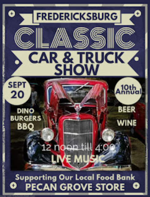 10th. Annual Fredericksburg Classic Car/Truck Show at the Historic Pecan Grove Store starts at noon.